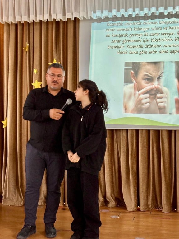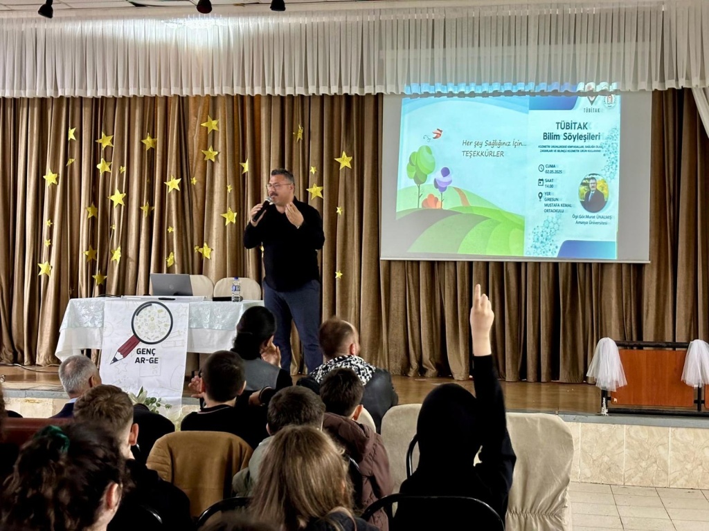 Bu kapsamda Okulumuz salonunda 02 Mayıs 2025 cuma günü Amasya üniversitesi öğretim görevlisi Doç.Dr.Murat ÜNALMIŞ tarafından “Kozmetik Ürünlerdeki Kimyasallar: Sağlığa Olası Zararları ve Bilinçli Kozmetik Ürün Kullanımı” konulu söyleşi gerçekleştirilmiştir. Öğrenci ve öğretmenlerin yoğun ilgisiyle gerçekleşen söyleşide günlük hayatta sıkça kullanılan kozmetik ürünlerde bulunan kimyasal maddelerin insan sağlığı üzerindeki etkileri ele alındı.Aynı zamanda, bilinçli ürün seçiminin önemi vurgulandı ve etik kozmetik markalarına nasıl ulaşılabileceği hakkında bilgiler paylaşıldı.